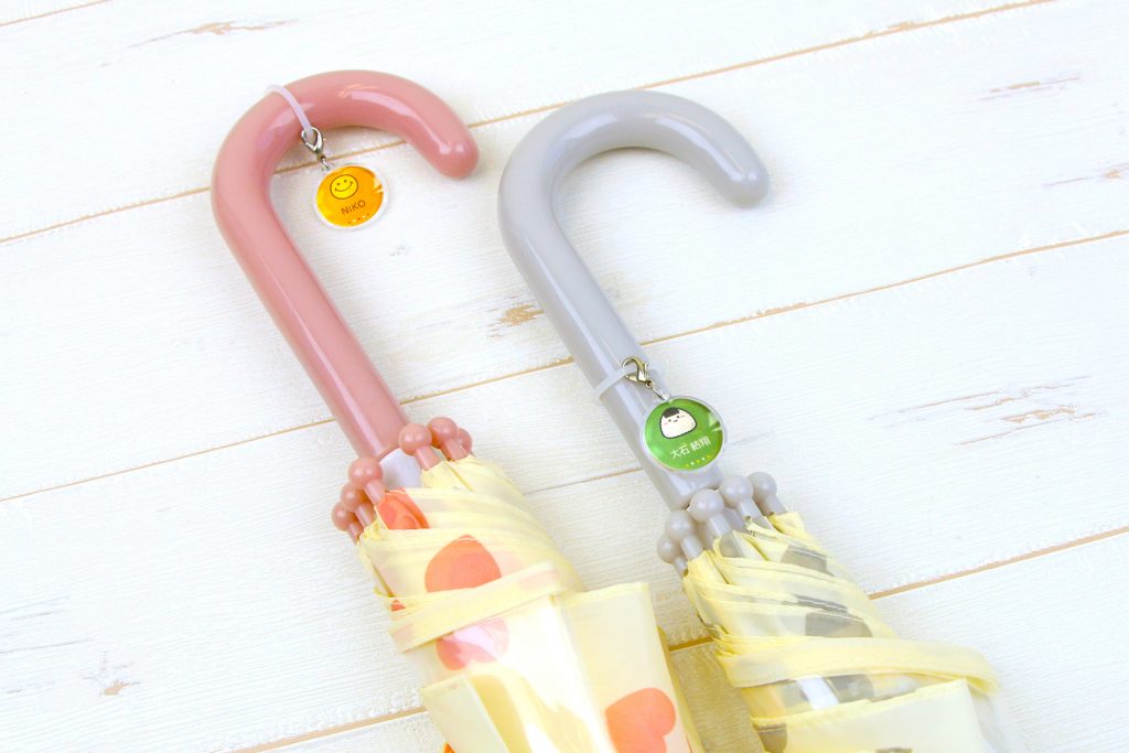 学校や保育園など、子どもが多く集まる場所では傘の取り違いは起こりがちです。そんな時、見た目がパッと分かるように名前やマークを付けておくと間違いが起こりにくくなります。