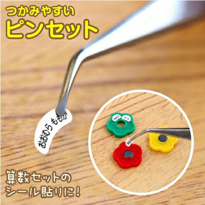 小学校入学準備で算数セットシールといっしょに購入しました。 普通のピンセットよりも先端がいい感じにカーブ且つちょうどい細さで シールの角端が捲りやすくとても役立っています。